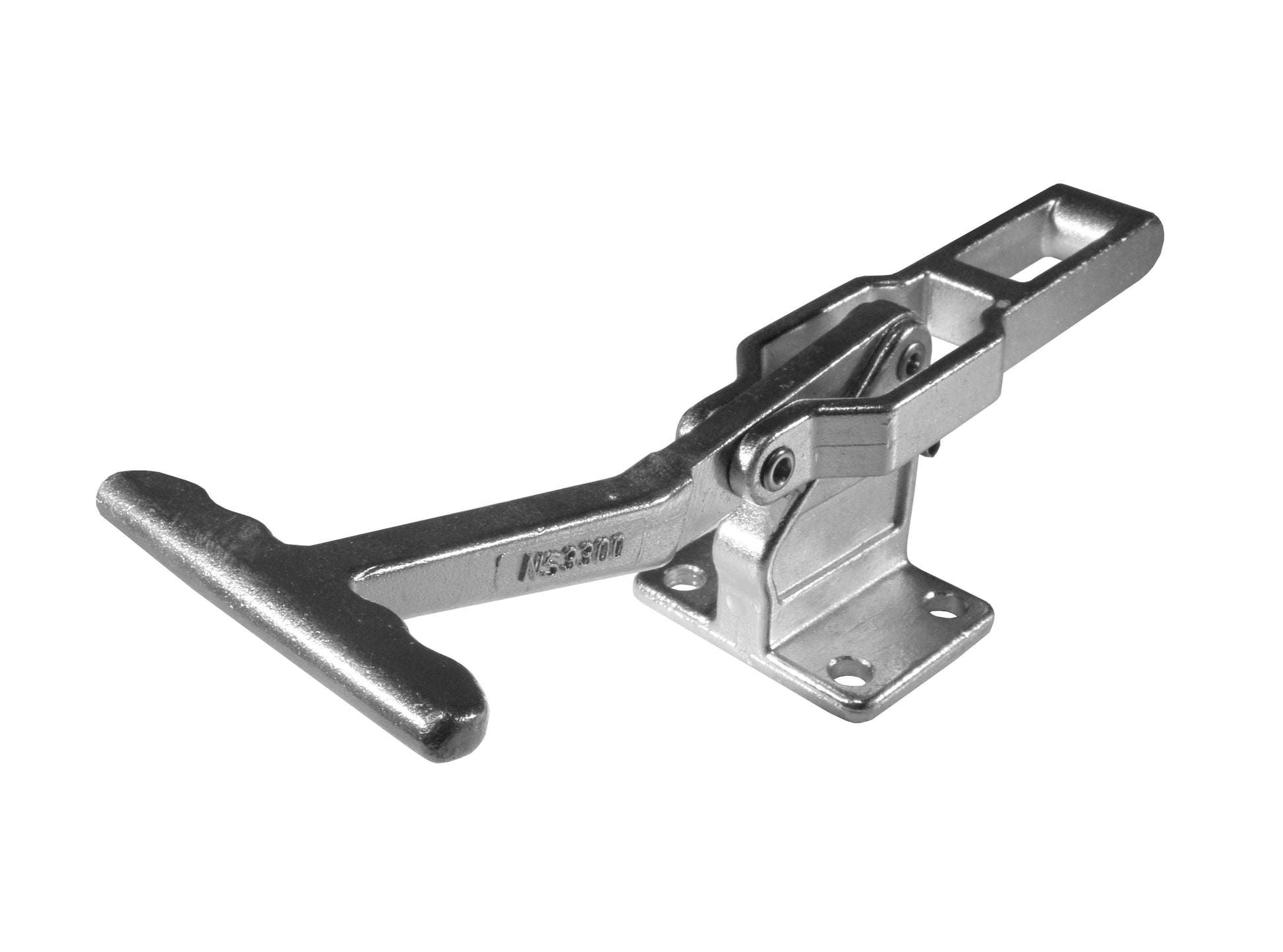 La seguridad es lo primero que nos impulsó a desarrollar nuestra última incorporación a nuestra línea de productos de abrazaderas. El NS3300 utiliza un mango longitudinal de diseño ergonómico diseñado específicamente para aliviar la presión sobre las manos de los operadores al abrir y cerrar moldes. Está formado por fundición para mayor resistencia y niquelado para resistencia a la oxidación. Con una capacidad de carga de 3300 Lbs. El NS3300 es un excelente reemplazo para quienes usan abrazaderas tipo 311. Además de una mayor capacidad de sujeción, el NS3300 también proporciona