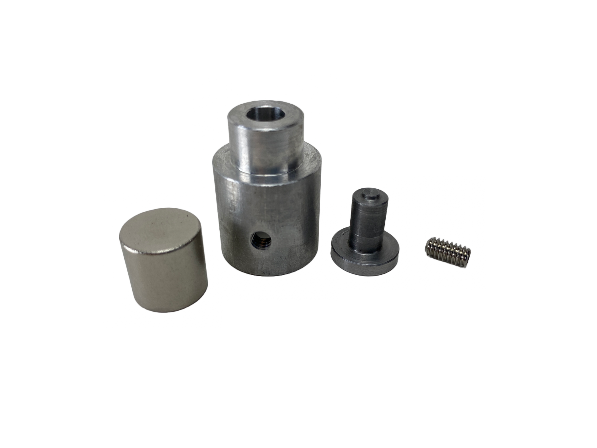 The team at RotoMart has developed a system for holding inserts that eliminates some of the issues currently being experienced with the traditional bolt-holding system. Our system utilizes a specially designed bushing in the wall of the mold and a very powerful rare earth magnet. By inserting a steel stud into the insert, it can then be placed onto the surface of the magnet which, in turn, holds it in place during the molding cycle.