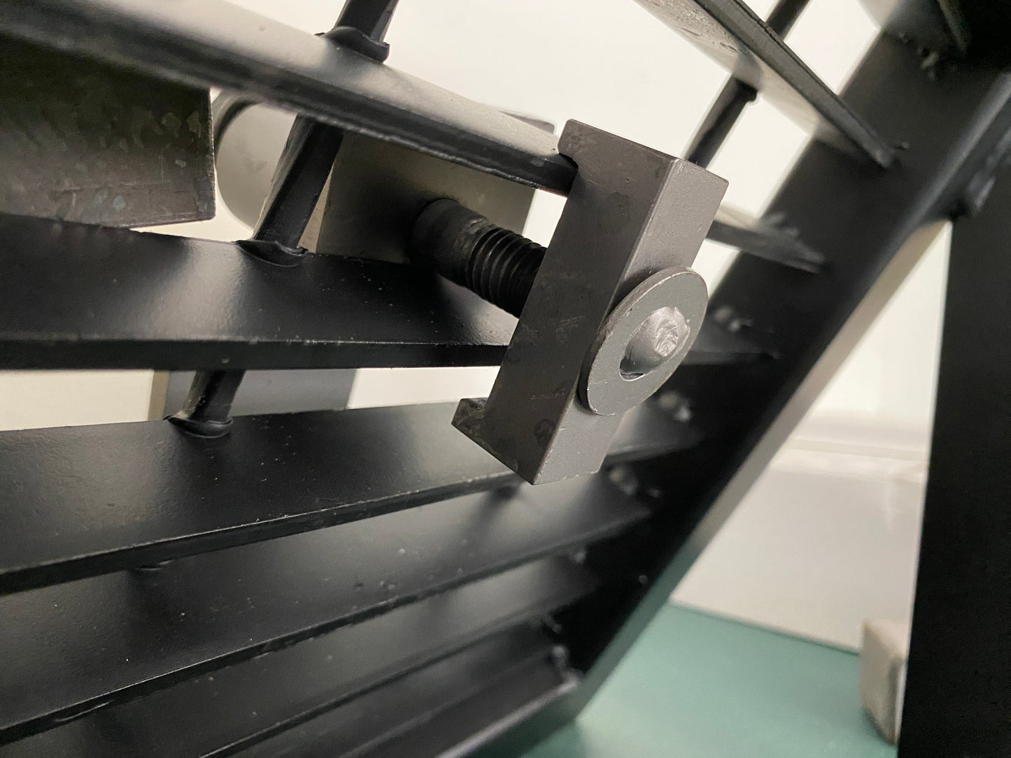 Now one operator can easily install the system that fits snuggly over any standard mold frame, push the receiver through the opening of the grate, rotate the latch 90 degrees, and secure the mold all from above the grate. When it comes time for removal, the process is reversed, again by only one operator, and all from above the grate. This new "Grate Grip" mounting system will make your Common Grids even more efficient by allowing you even faster mold change-out times than with the current bolt and nut process.